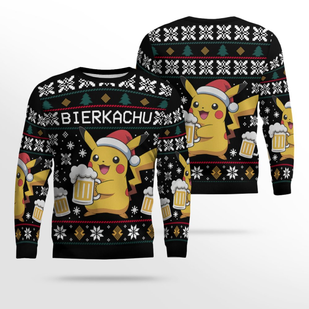 Unleash the festive fun with the ultimate combination of beer, Pokémon, and holiday cheer in the 2025 Christmas BIERKACHU Ugly Christmas Sweater! Featuring an epic mashup of Pikachu and a frosty beer mug, this sweater is perfect for fans of both Pokémon and brews. With high-quality printed graphics, it’s the perfect sweater to wear to ugly sweater parties, beer-loving gatherings, or just to add a spark of joy to your holiday season.