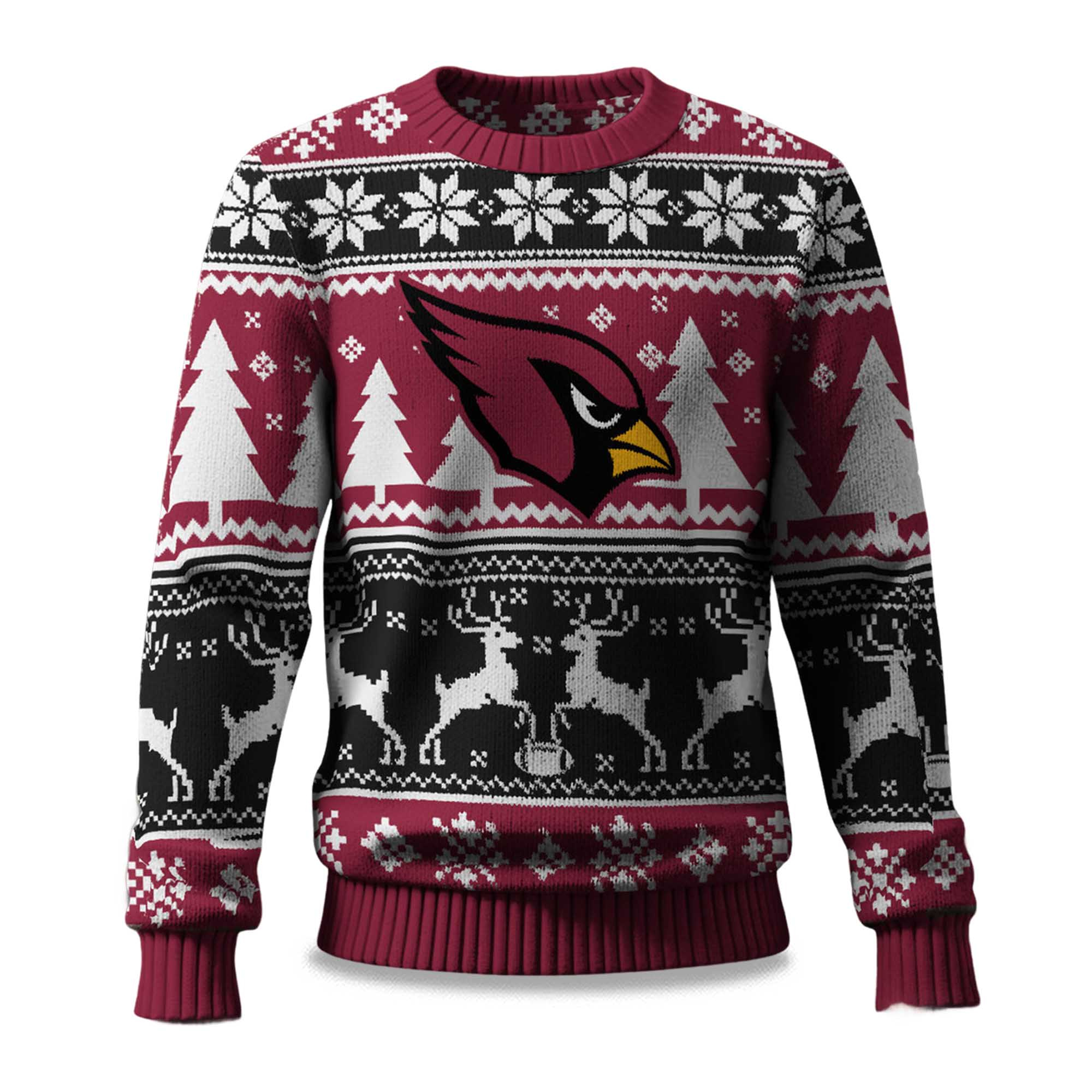 2025 Christmas Cardinals Reindeer Football Ugly Sweater