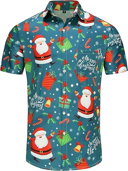 Featuring a vibrant print of holiday icons, cheerful decorations, and festive patterns, it adds energy and joy to any occasion. Perfect for Christmas parties, family gatherings, or tropical vacations, this shirt makes your holiday outfit lively and memorable.