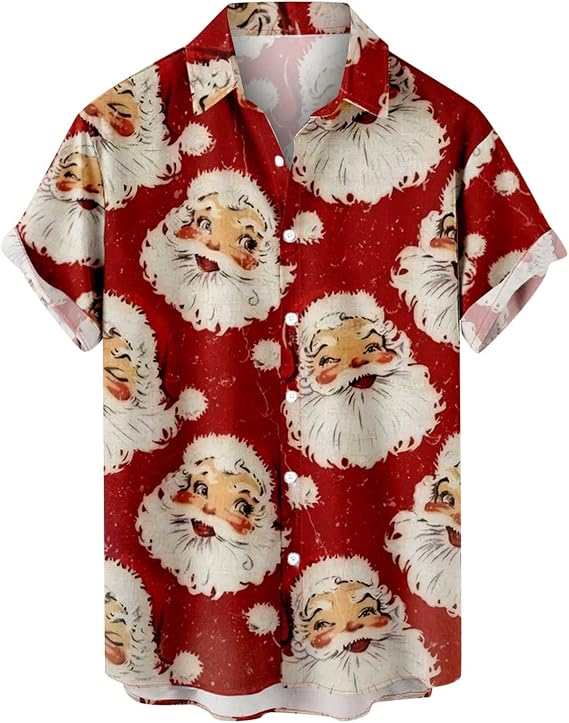 Featuring an adorable print of Santa Claus with holiday motifs, it captures the fun and warmth of the season. Perfect for Christmas parties, family gatherings, or tropical vacations, this shirt adds a lively and cheerful touch to any occasion.