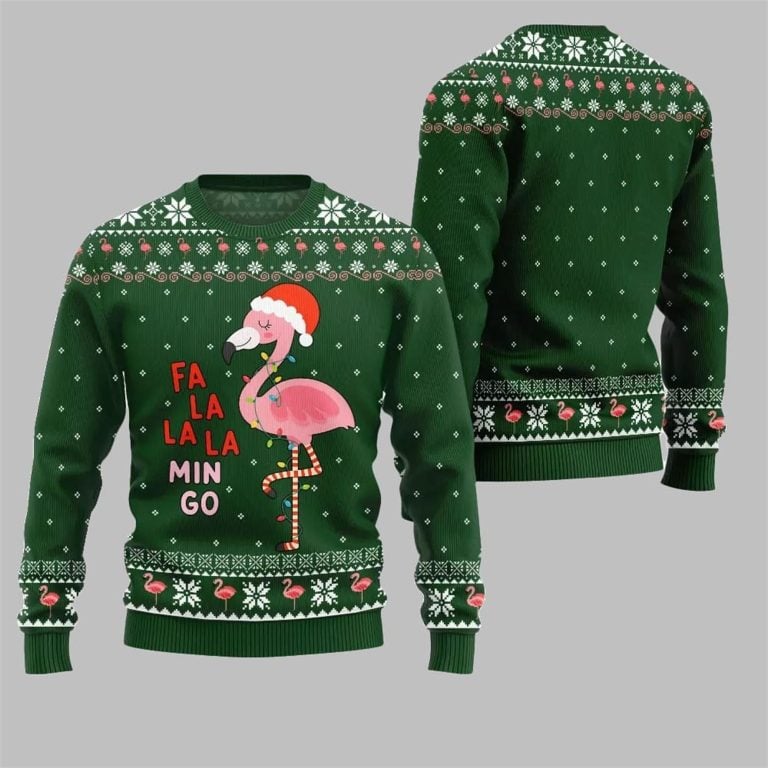 2025 Christmas Fala Mingo Flamingo Sweater Green 2025 Christmas Fala Mingo Flamingo Sweater Green