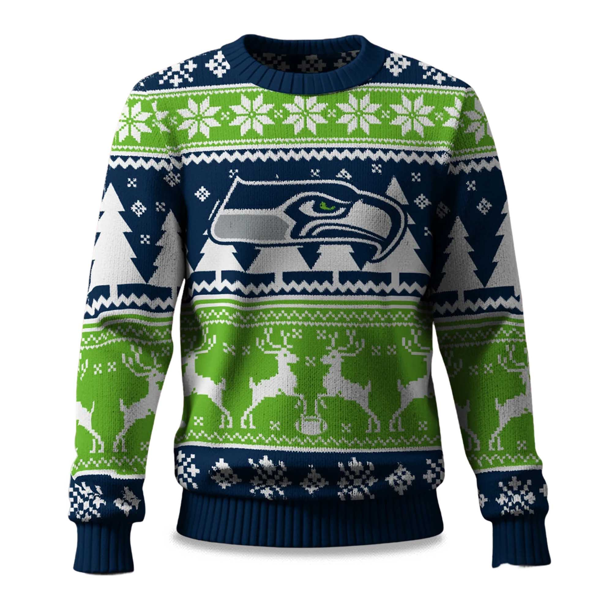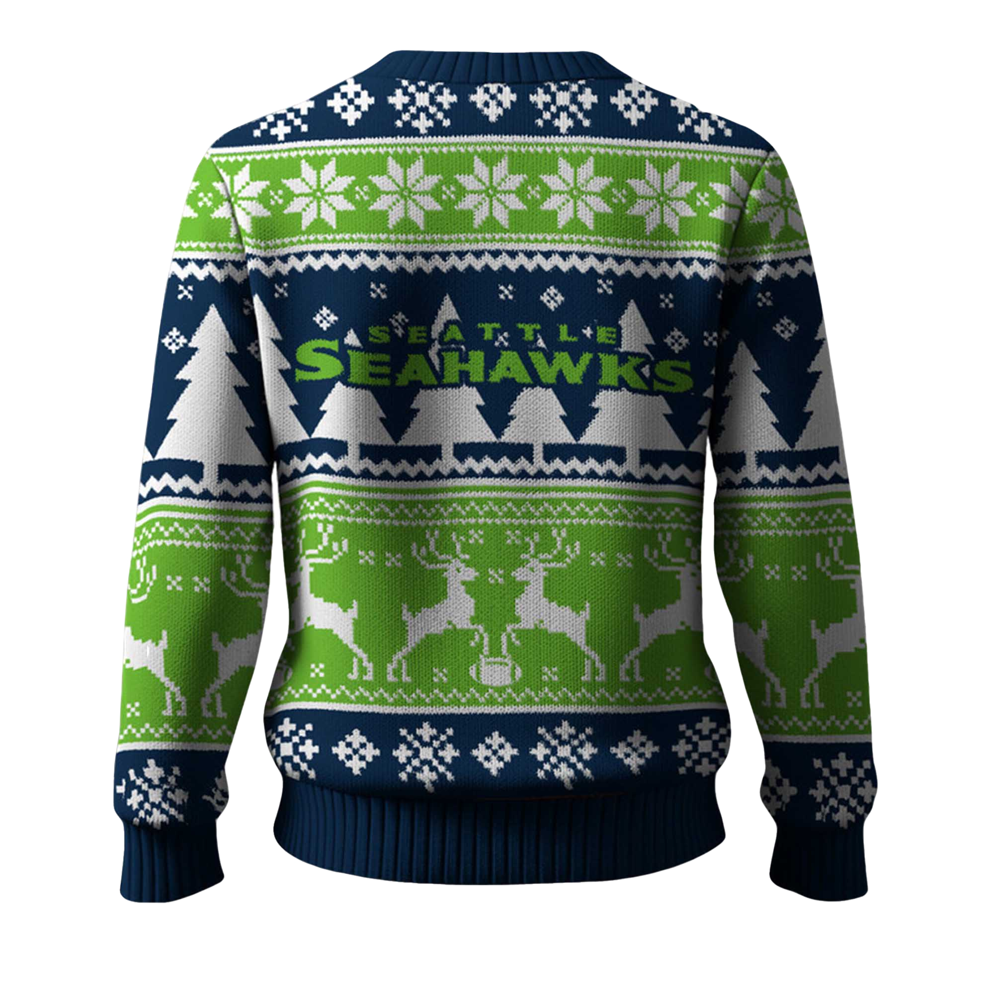 Show your Seattle pride this holiday season with the 2025 Christmas Seahawks Reindeer Football Ugly Sweater. Featuring a festive reindeer in Seahawks gear, this cozy sweater combines the excitement of football with the spirit of Christmas for a fun and spirited holiday look.
