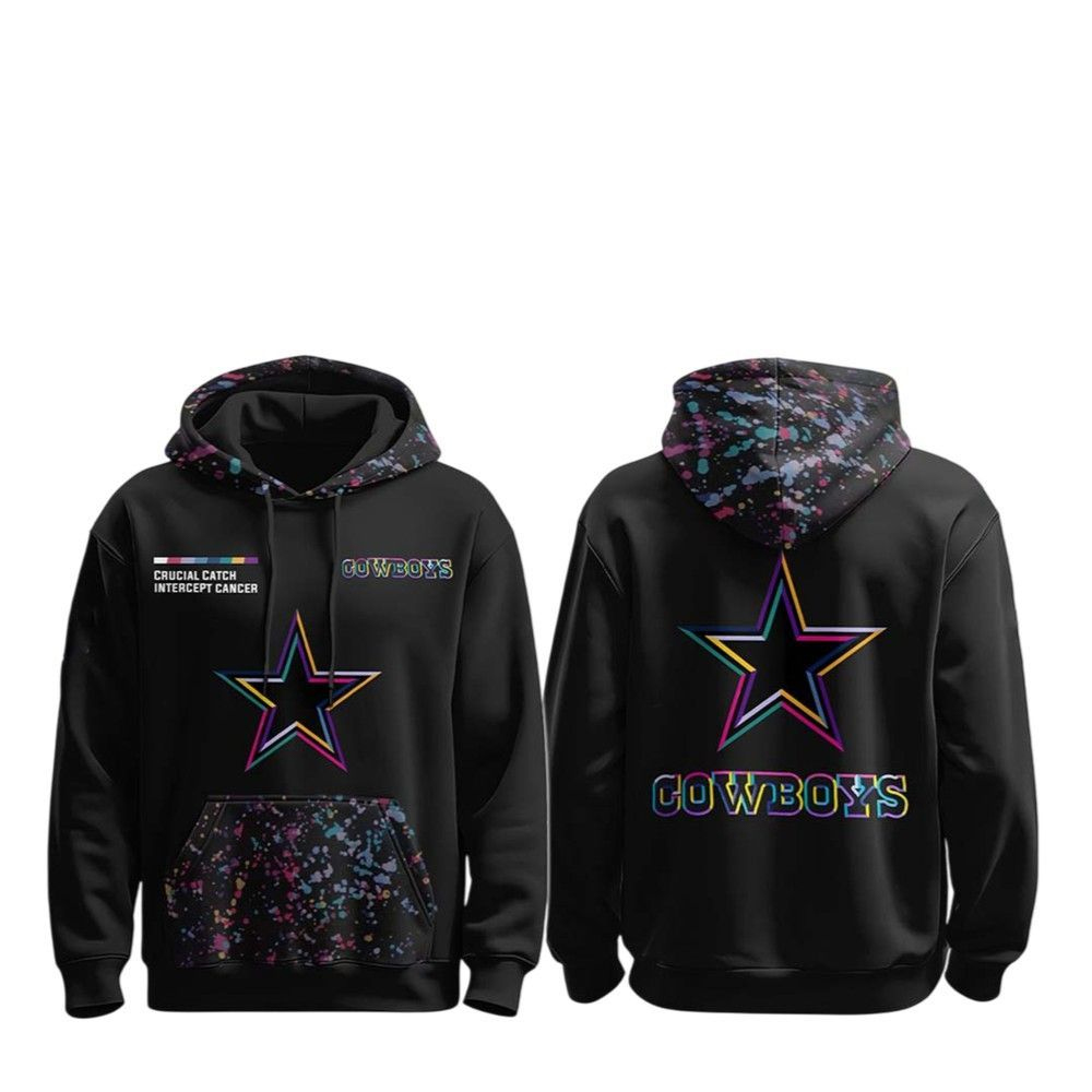 Support the Dallas Cowboys and raise awareness for early cancer detection with the 2025 Dallas Cowboys Crucial Catch Intercept Cancer Hoodie. Featuring bold Cowboys graphics and the impactful “Intercept Cancer” design, this hoodie combines team pride with a powerful message of hope.