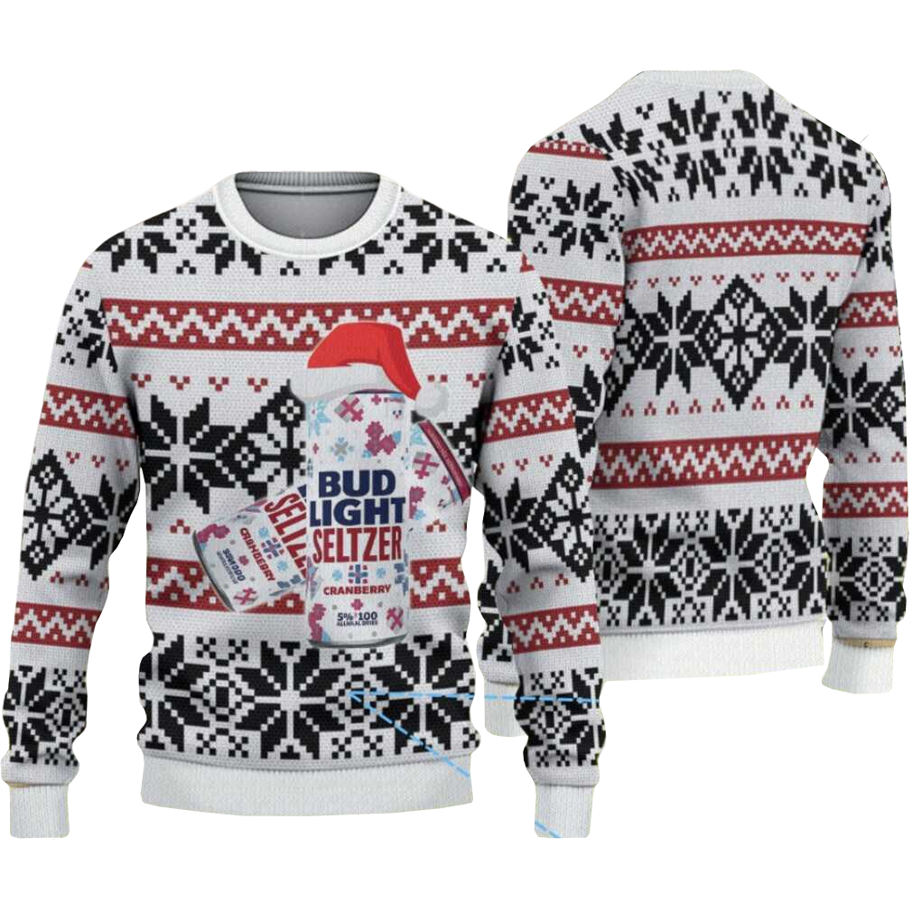 2025 White Black and Red Nordic Snowflake Bud Light Seltzer Ugly Christmas Sweater