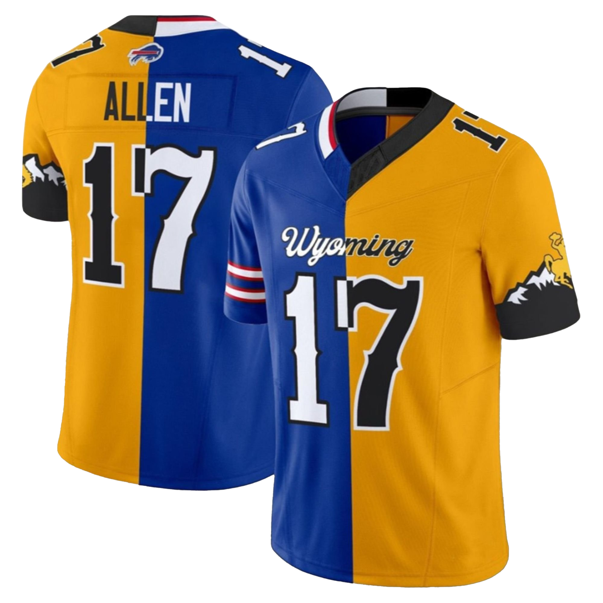 This jersey is all about showcasing the future of Wyoming football. Featuring Allen’s name and number 17, it honors the strength and potential of a player who’s set to dominate the field. The gold and blue color scheme symbolizes both tradition and the exciting future ahead, making it the ultimate choice for fans who are proud to support Wyoming’s next great athlete.