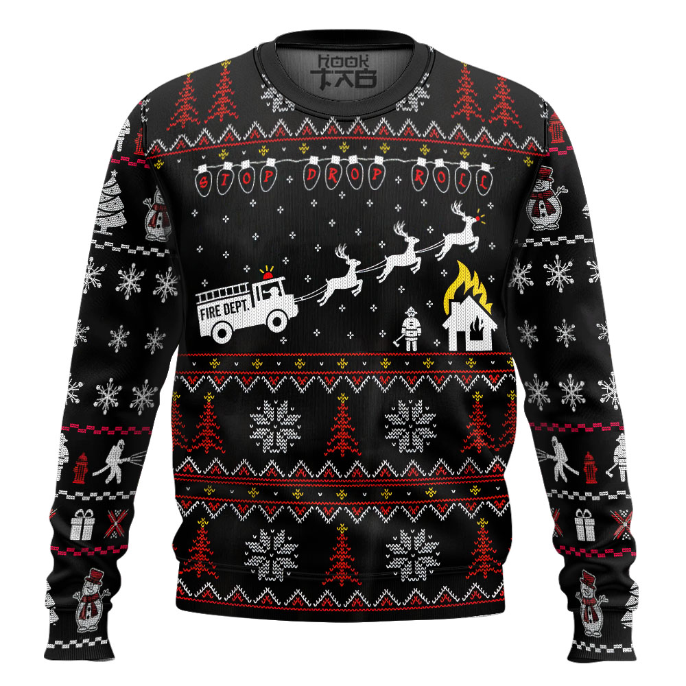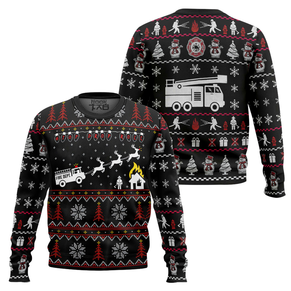 3D Firefighter FIRE DEPT Ugly Christmas Sweater Sweatshirt Apparel