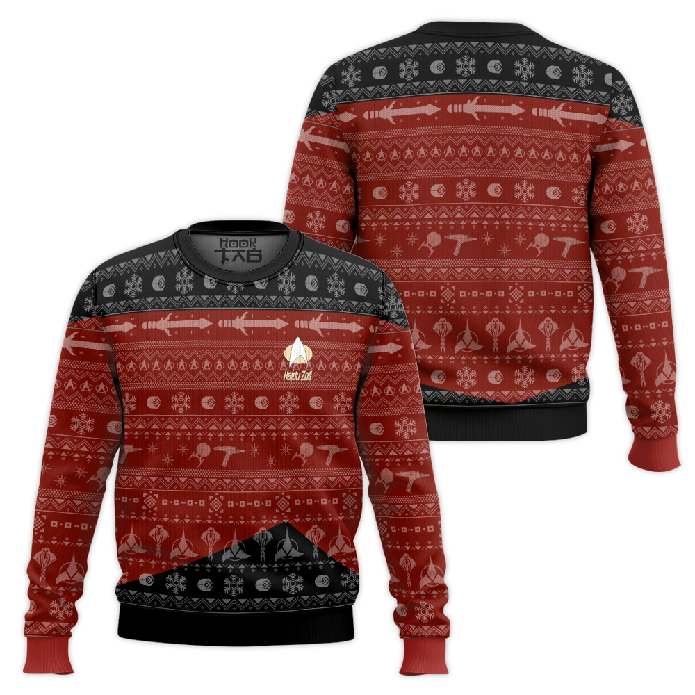 3D S.T The Next Generation 1987 Red Ugly Christmas Custom Name Ugly Sweater