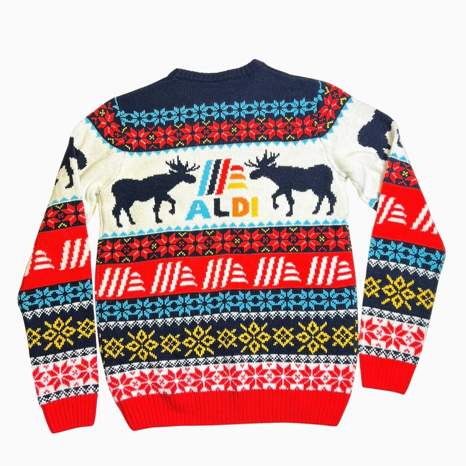 This ugly Christmas sweater adds a fun, retail twist to your holiday wardrobe. With a playful design that incorporates the iconic Aldi logo, holiday elements, and cheerful colors, it’s sure to make a statement wherever you go. Perfect for fans of Aldi who want to show their seasonal spirit in a lighthearted way, this sweater adds a touch of humor and holiday magic to your celebrations.