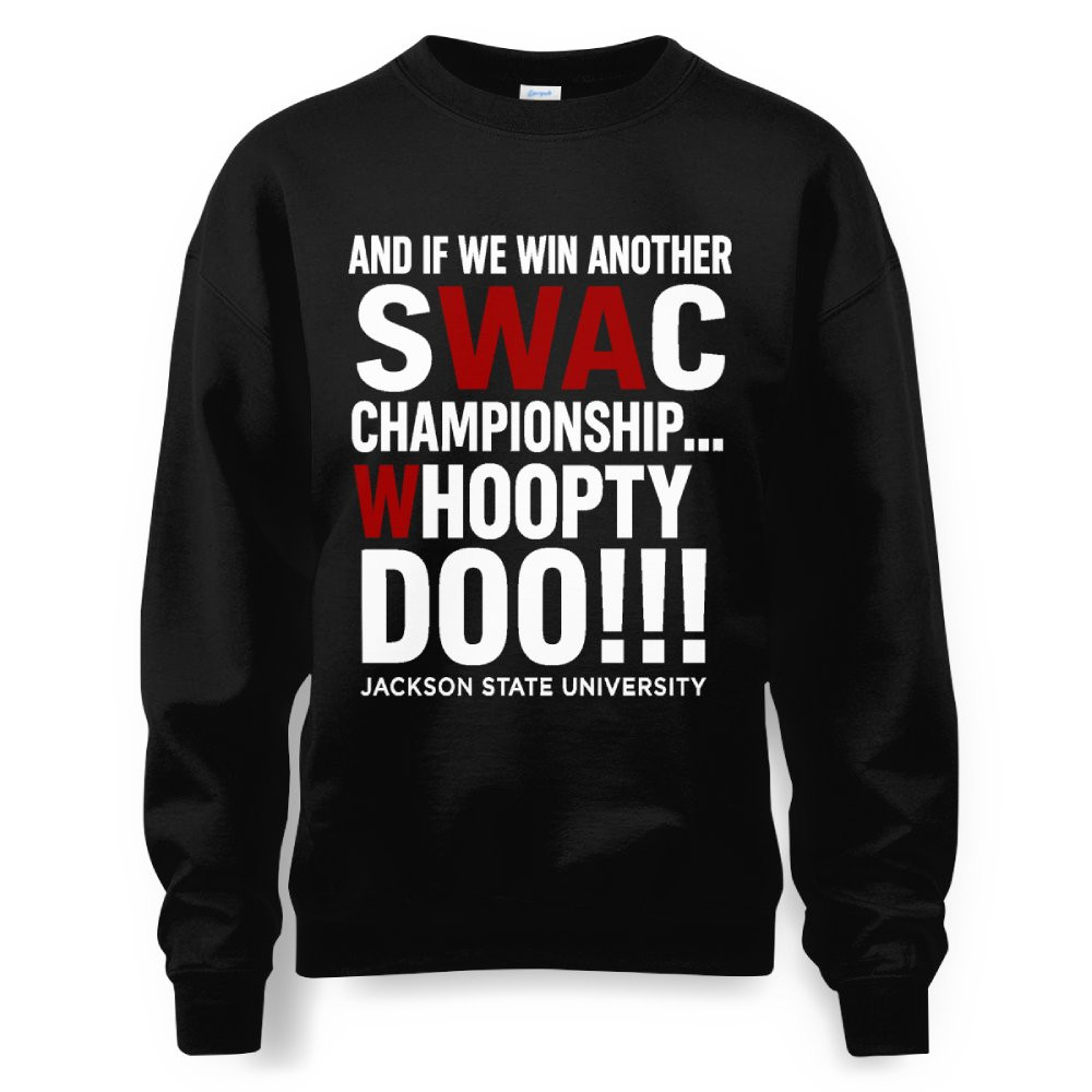 Bold, Playful Design: Featuring the bold slogan “And If We Win Another SWAC Championship Whoopty Doo,” this shirt captures the playful confidence and winning attitude of Jackson State University. It’s the perfect balance of pride, humor, and school spirit.