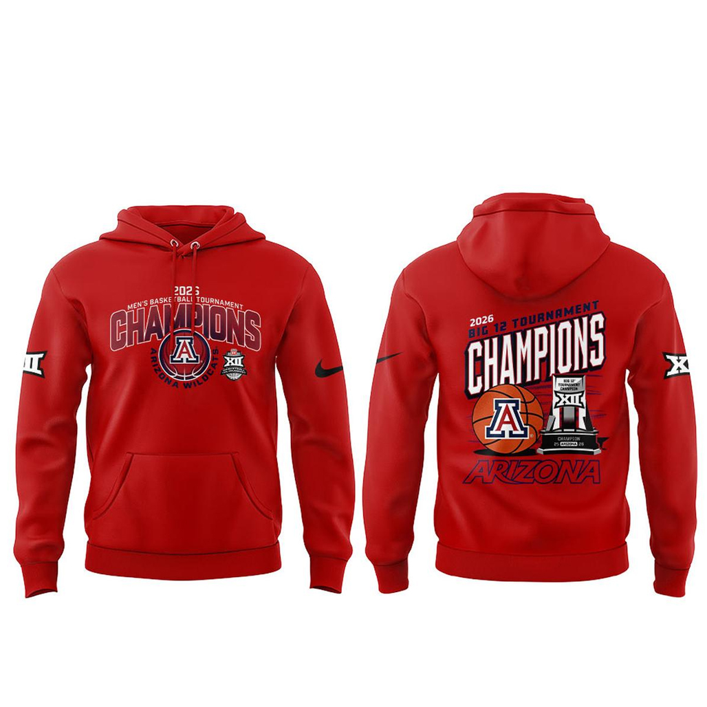 This design commemorates the Arizona Wildcats as the 2026 Big 12 Men’s Basketball Tournament Champions, capturing the pride and excitement of a championship season.