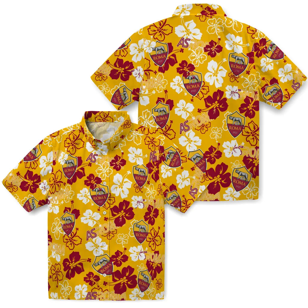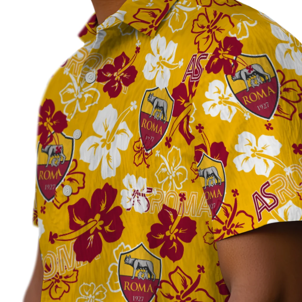 AS Roma Hibiscus Bloom Hawaiian Shirt
