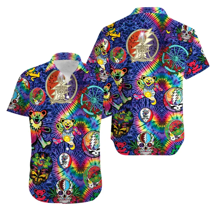 Bears Grateful Dead Tie Die Hawaiian Shirt