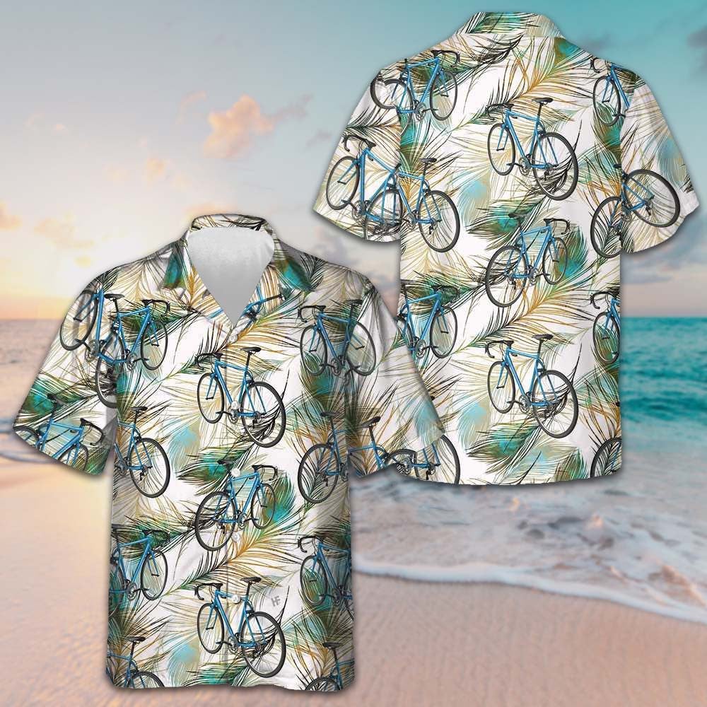 Bicycle And Feather Hawaiian Shirt Men's Beach Button Up Best Gift For Bikers