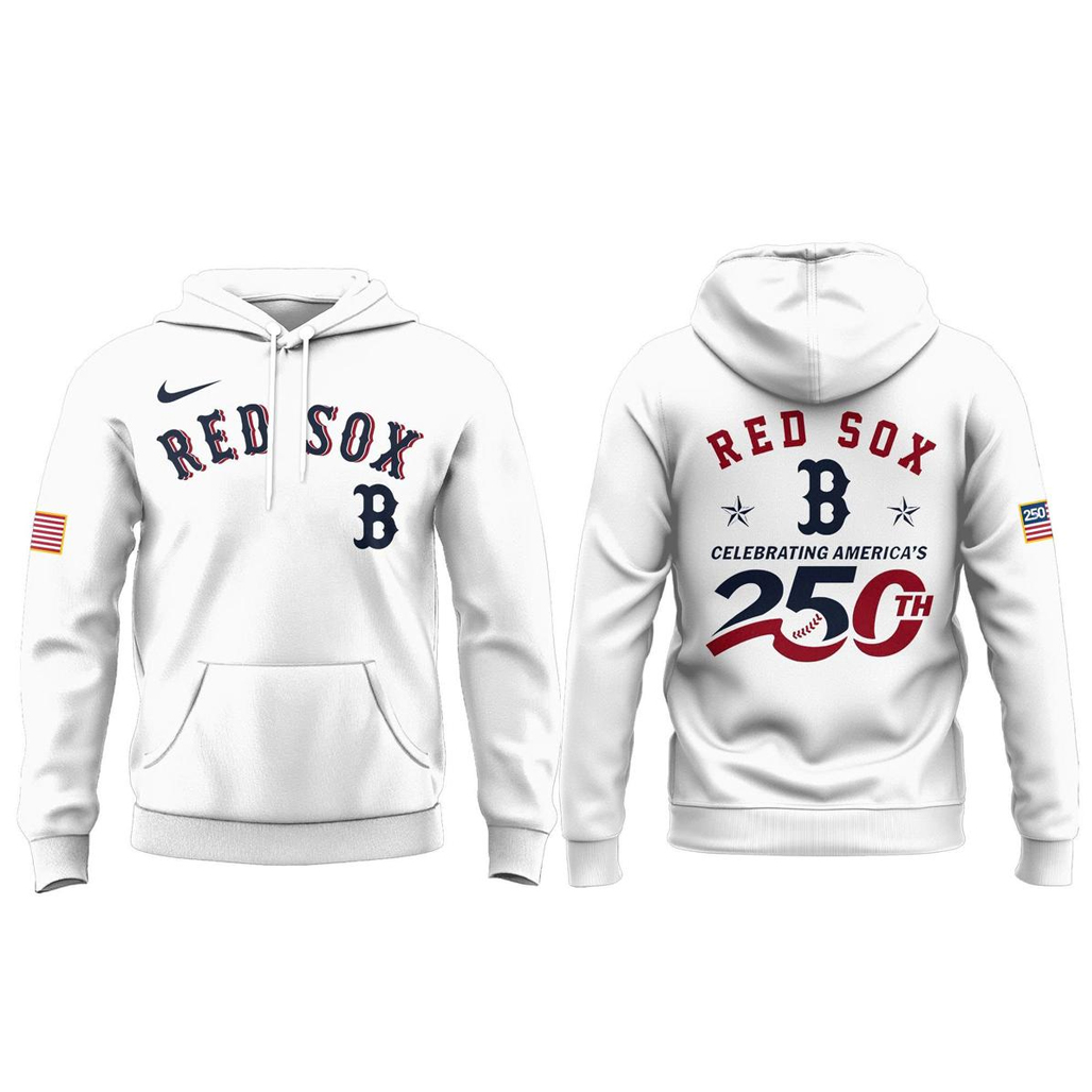 Boston Red Sox 2026 Celebrating America’s 250th White Hoodie Boston Red Sox 2026 Celebrating America’s 250th White Hoodie