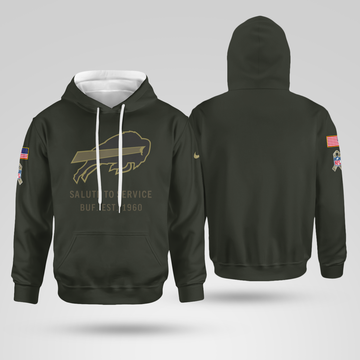 Color Options: Forest green — a bold and respectful color that honors both the Bills and the military