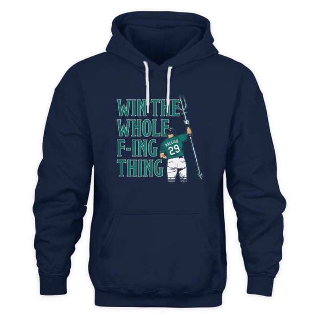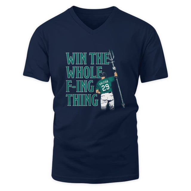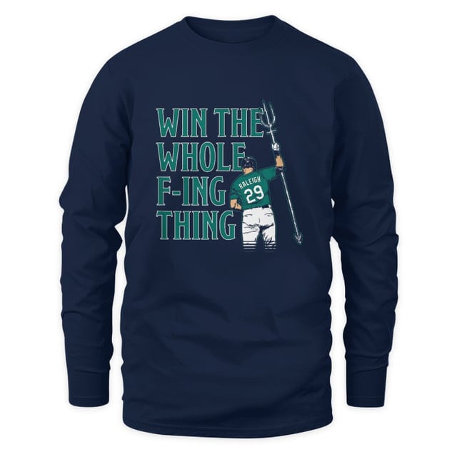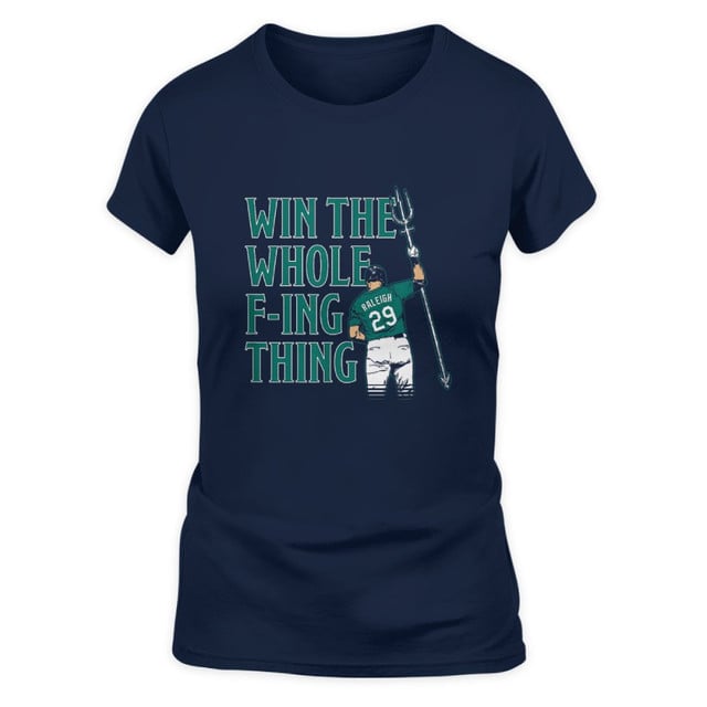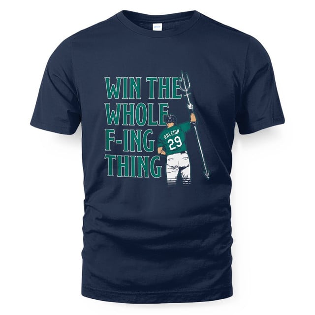 Gear up for the ultimate season with the Cal Raleigh Win the Whole F-ing Thing T-Shirt! This bold and unapologetic tee celebrates the fiery passion and relentless drive that Cal Raleigh brings to the Mariners every day. With a no-nonsense message of determination, this shirt is for fans who aren’t just looking for a playoff berth — they want the whole damn thing. Let’s go for the win and make some noise, just like Big Dumper does at the plate!