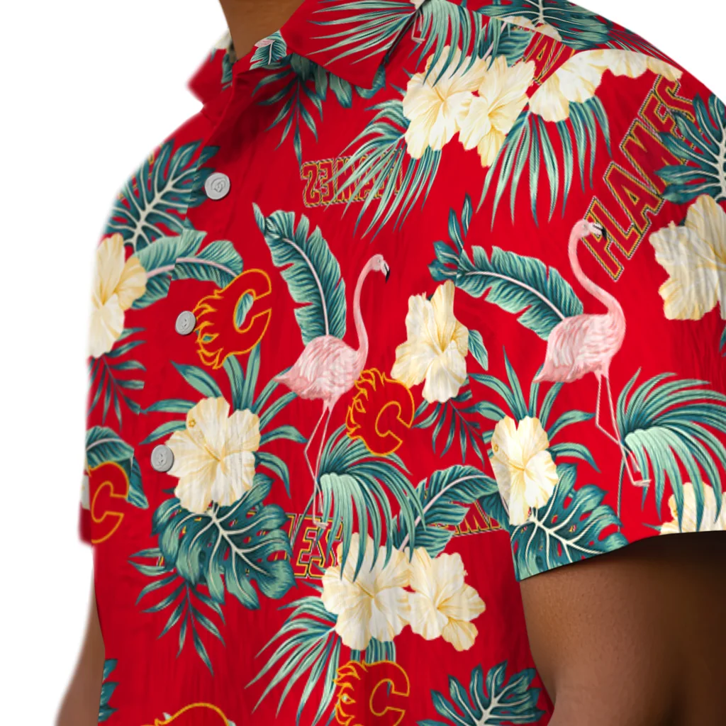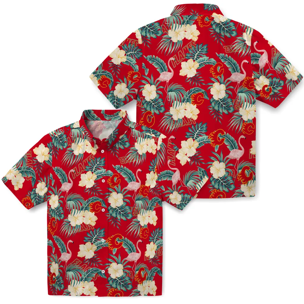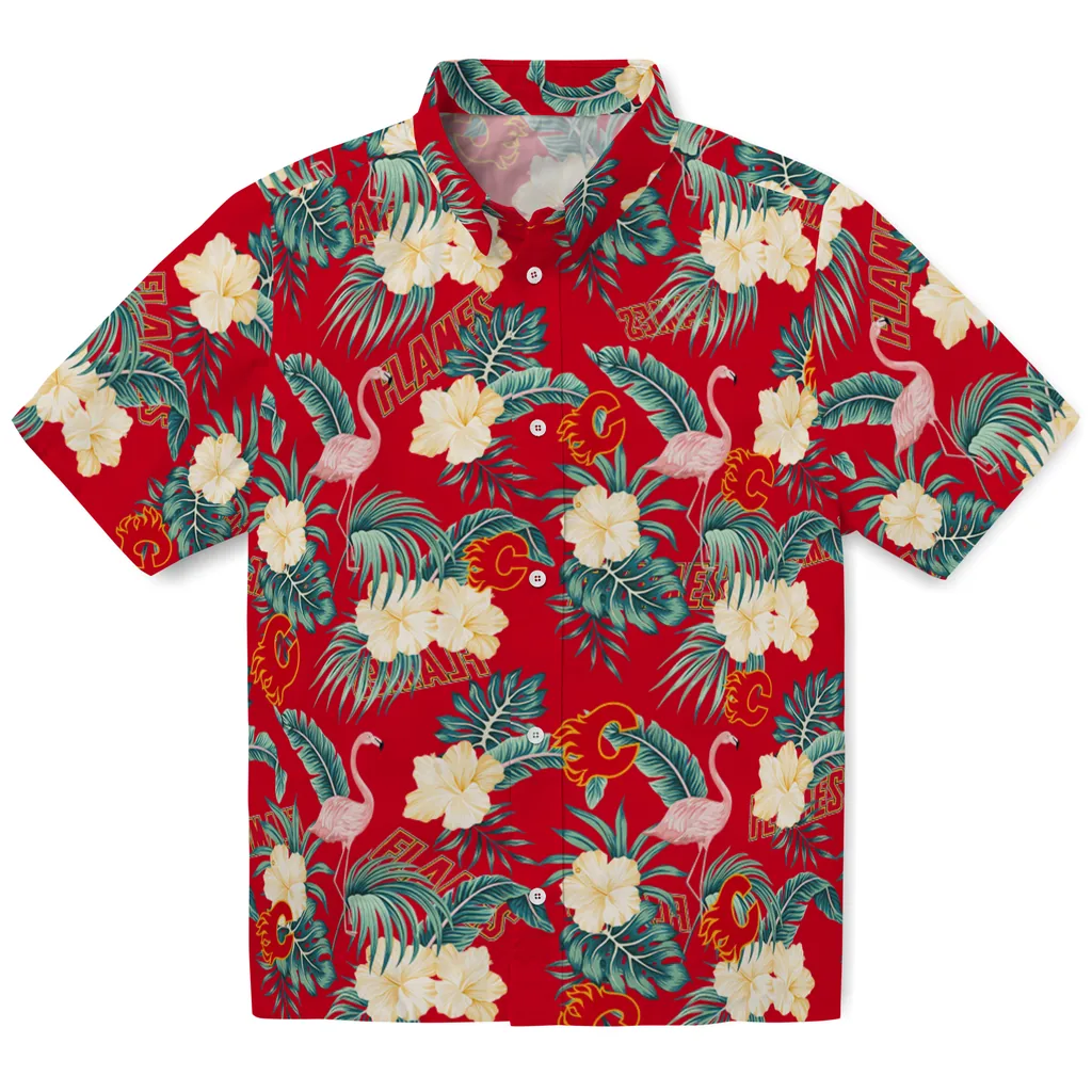 Calgary Flames Hawaiian Shirt - Flamingo and Hibiscus Calgary Flames Hawaiian Shirt - Flamingo and Hibiscus