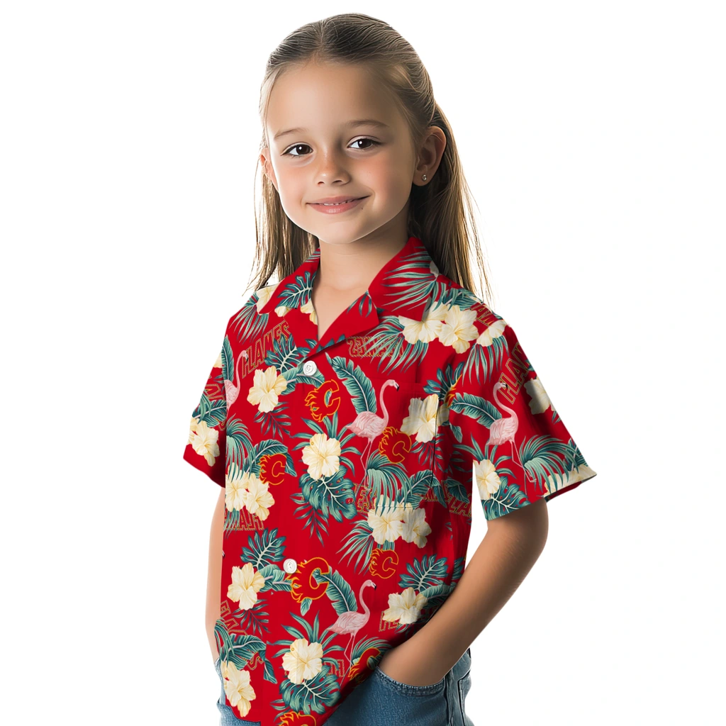 Calgary Flames Hawaiian Shirt – Flamingo and Hibiscus
