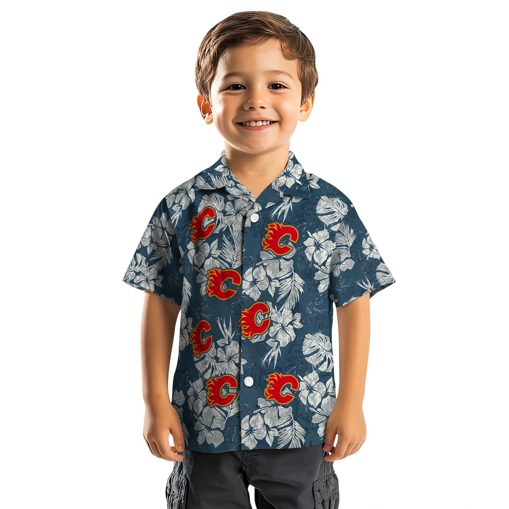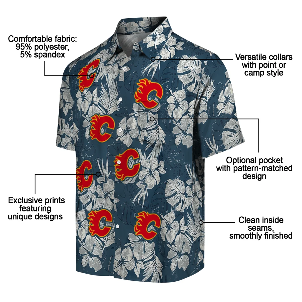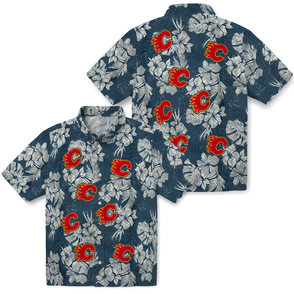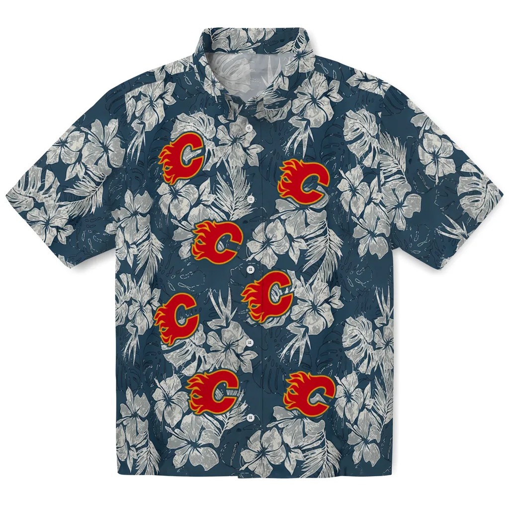 Calgary Flames Hawaiian Shirt - Hibiscus Flowers