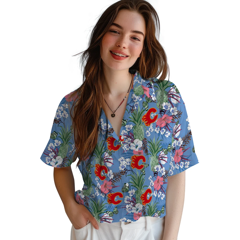 Calgary Flames Hawaiian Shirt - Pineapple Bouquet