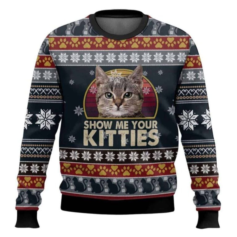 Celebrate the holidays with purr-sonality and a playful sense of humor in the Cat “Show Me Your Kitties” Ugly Christmas Sweater. Perfect for cat lovers who enjoy a cheeky, fun twist on holiday fashion, this sweater combines cozy Christmas cheer with feline charm.