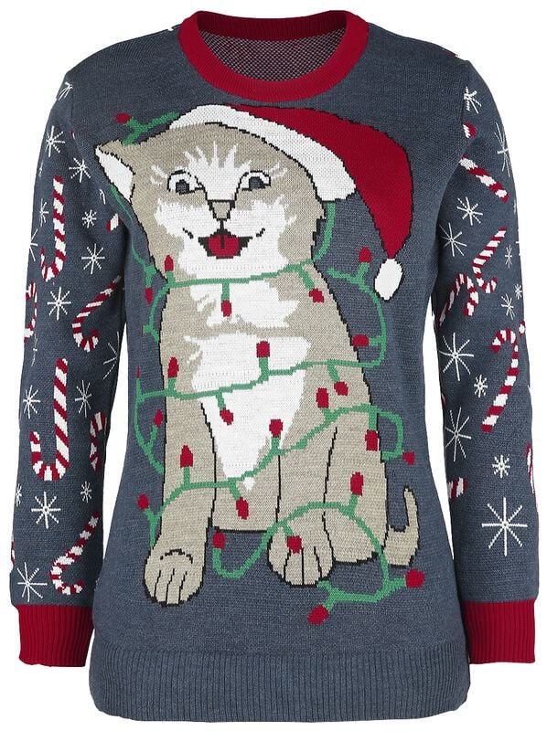 The cute cat-in-lights design makes this sweater memorable, fun, and perfect for holiday photos.