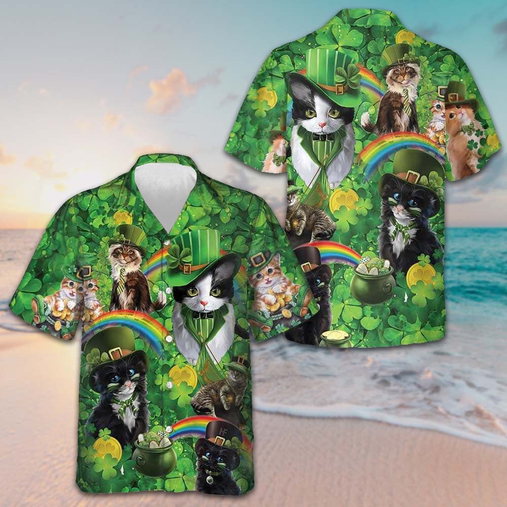 Cats Saint Patrick's Day Hawaiian Shirt Shamrock Button Down Shirt Gifts For Irish Cat Lovers Cats Saint Patrick's Day Hawaiian Shirt Shamrock Button Down Shirt Gifts For Irish Cat Lovers
