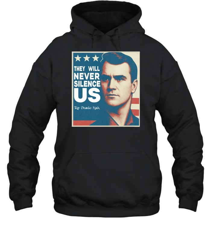 Charlie Kirk “They Will Never Silence Us” T-Shirt – Voice, Legacy, Resistance