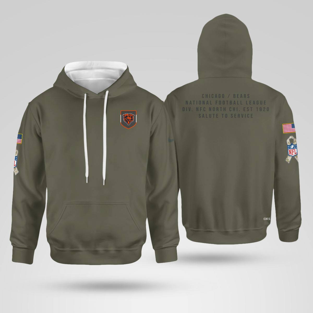 Chicago Bears Olive 2025 Salute to Service Hoodie