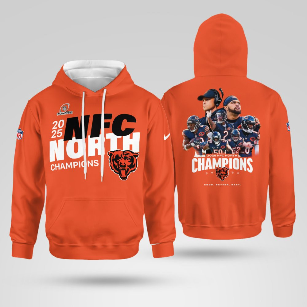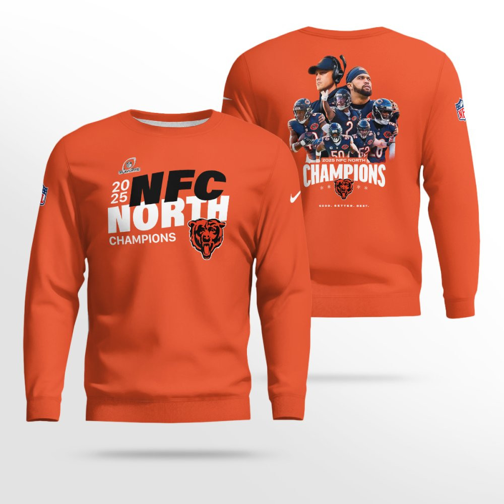 This shirt celebrates the Chicago Bears’ 2025 NFC North title, capturing the pride and power of a team that’s always ready to fight. The front graphic is a tribute to their hard-earned victory, designed for fans who understand what it means to rise to the top.