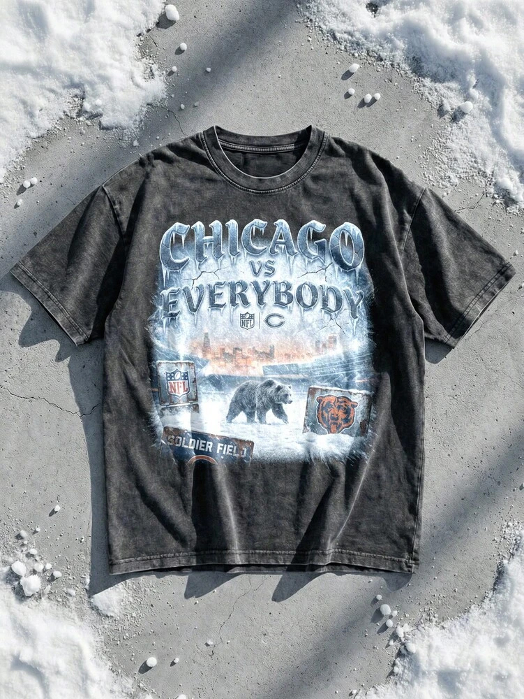 Graphic: Vintage wash “Chicago Bears vs Everybody” design with bold, team-inspired styling.