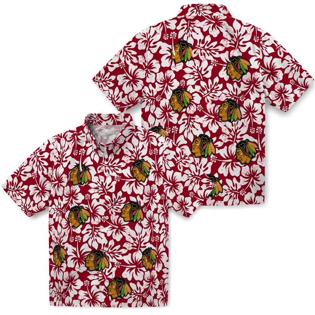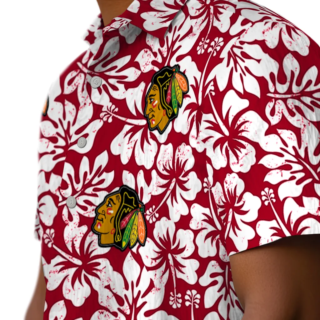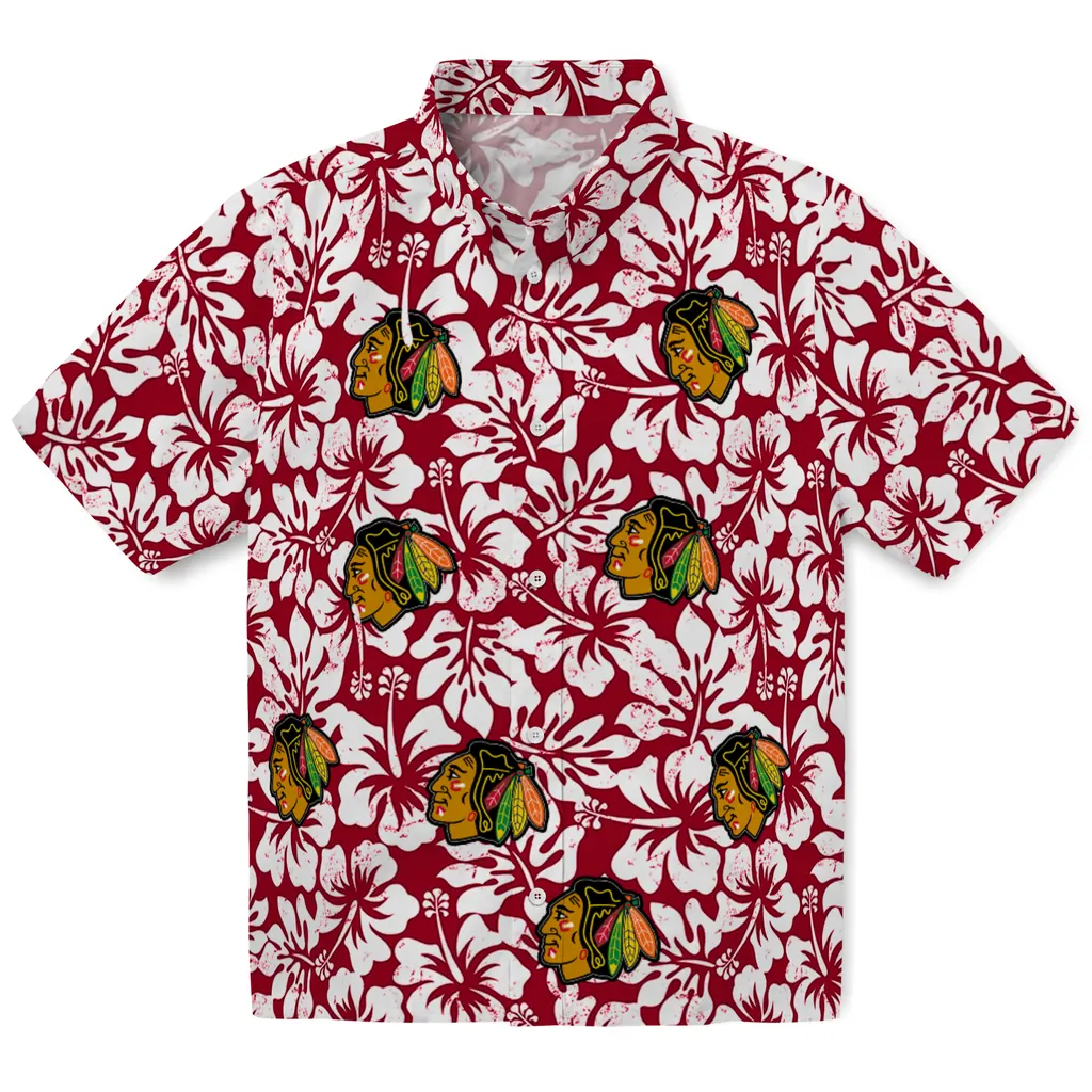 Chicago Blackhawks Hawaiian Shirt - Hibiscus Motif