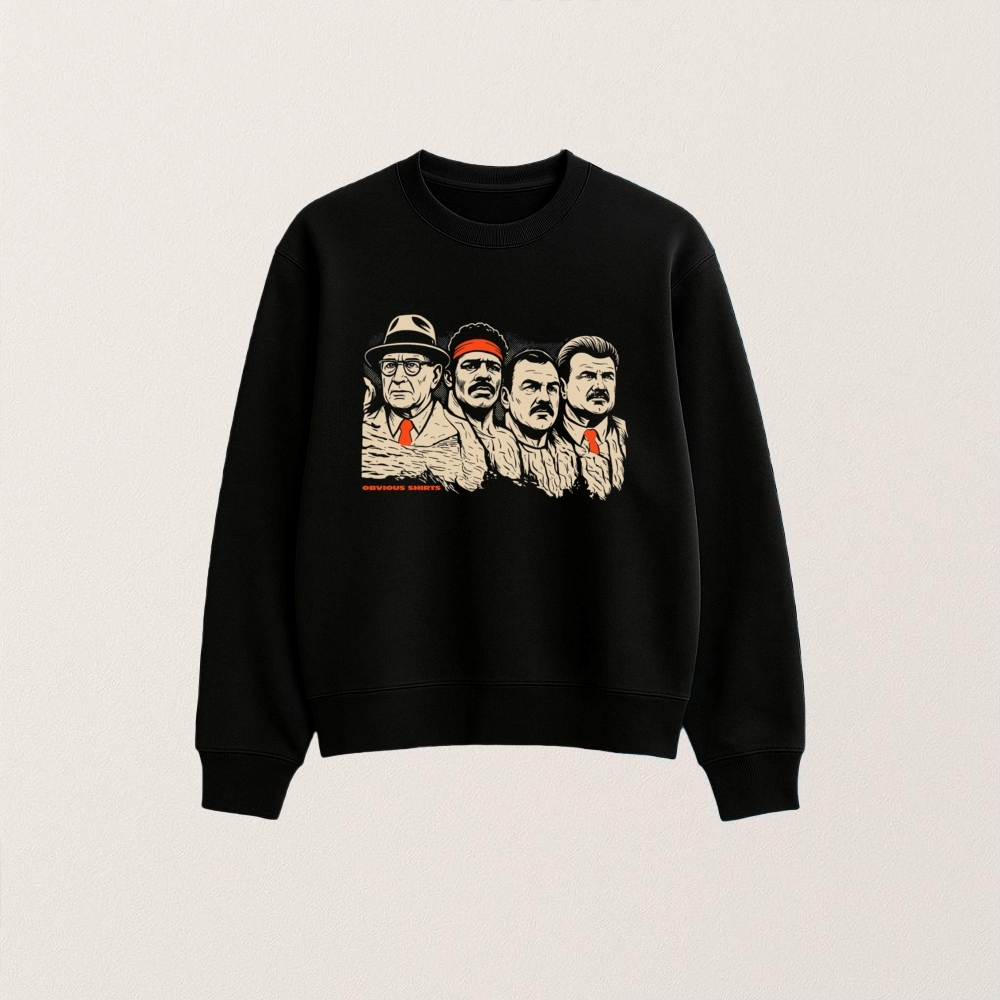 The Chicago Football Legends Mount Rushmore T-shirt design can be interpreted as a multifaceted commentary on the city’s sports culture and broader societal issues. By featuring iconic football figures, it celebrates athletic excellence while potentially critiquing the commercialization and hero-worship in sports. The design might also subtly reference Chicago’s history of political corruption and social challenges, drawing parallels between the revered status of sports legends and the city’s complex legacy. This layered message invites viewers to reflect on the intersection of sports, culture, and social dynamics, sparking dialogue about the underlying themes it encapsulates.