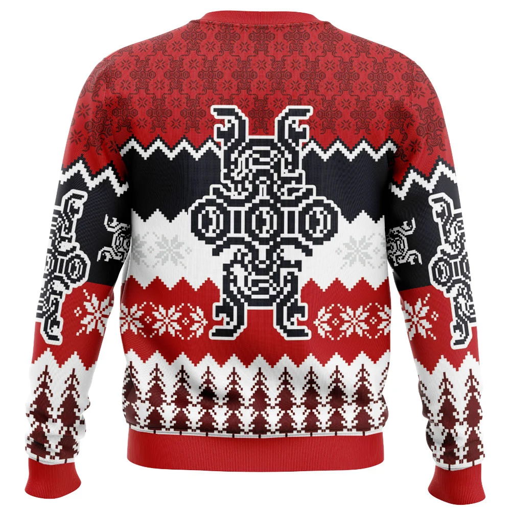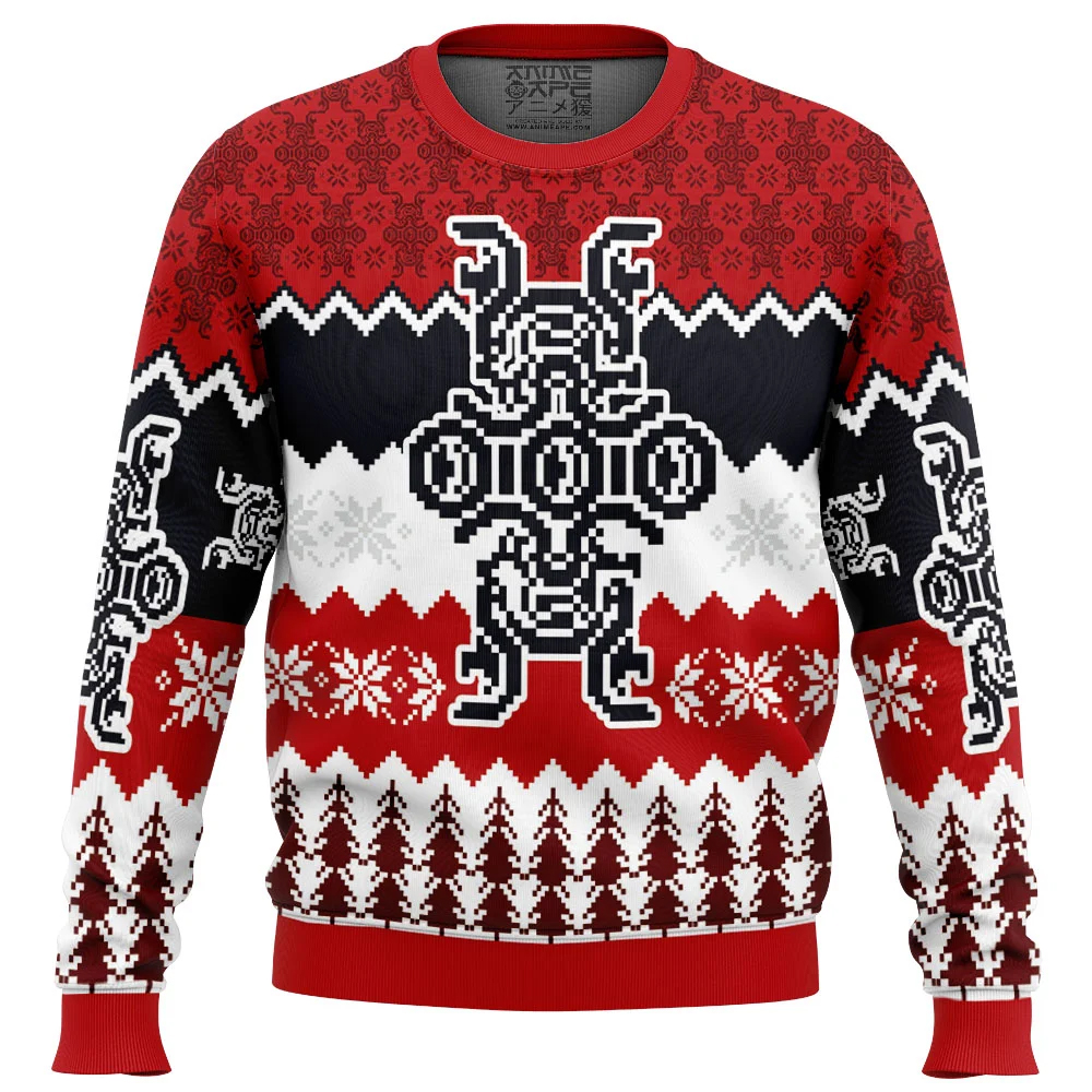In Shadow of the Colossus, the hero Wander embarks on a journey to defeat massive, mythical creatures to save his beloved. This sweater embraces the essence of that legendary adventure, featuring elements from the game reimagined for the Christmas season. It’s a perfect way to show off your love for Shadow of the Colossus while embracing the magic of the holidays.