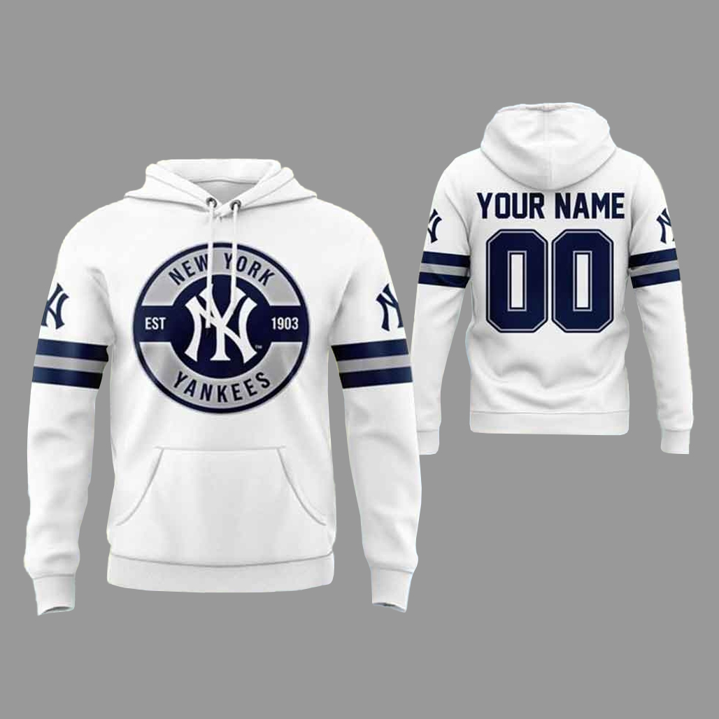 Customize the hoodie with your own name and number to create a unique piece that shows off your Yankees pride.