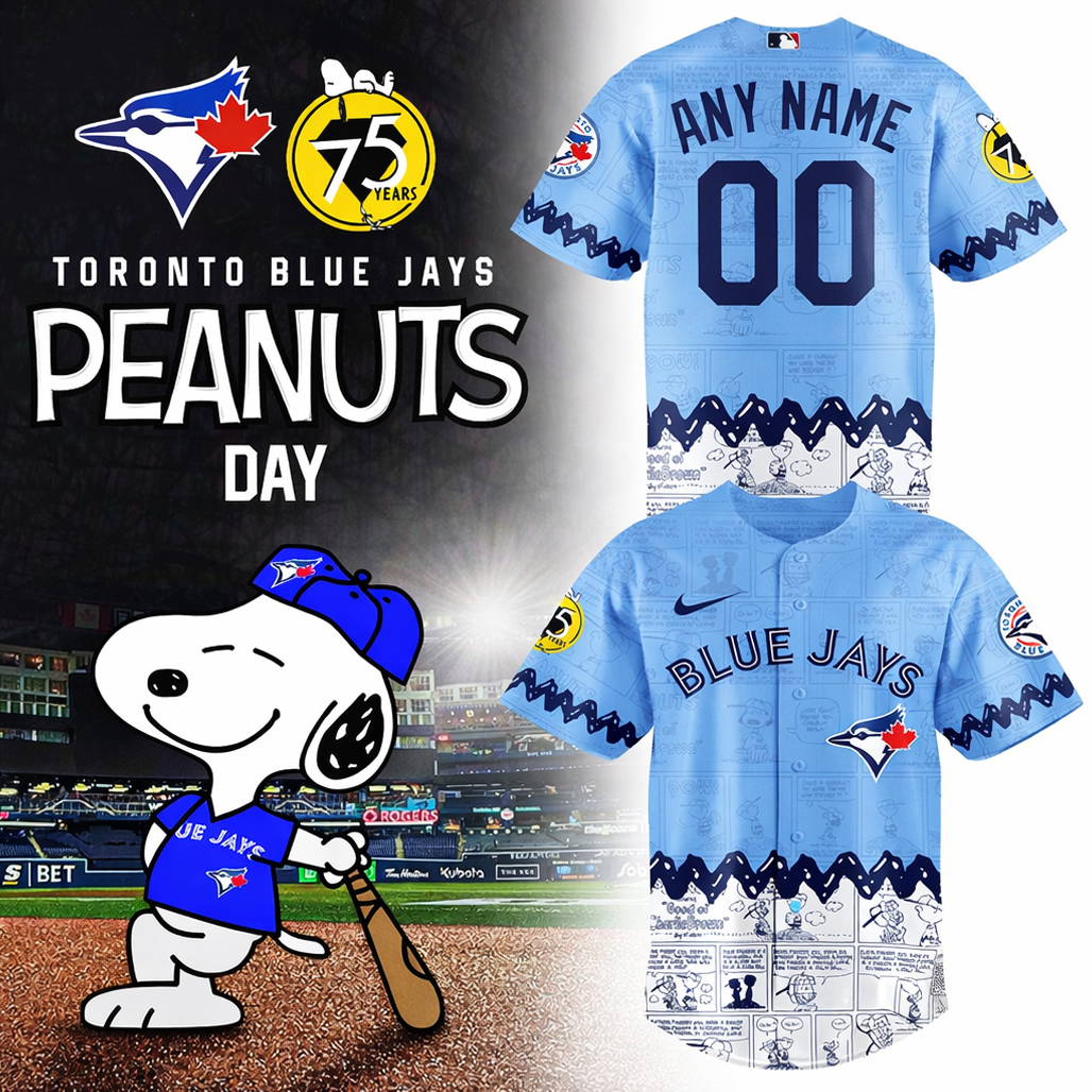Step into fun and personalization with the Custom Name and Number Toronto Blue Jays Peanuts Day 2026 Gameday Baseball Jersey. This playful design blends Blue Jays pride with the beloved Peanuts characters, creating a cheerful and eye-catching look that’s uniquely yours.