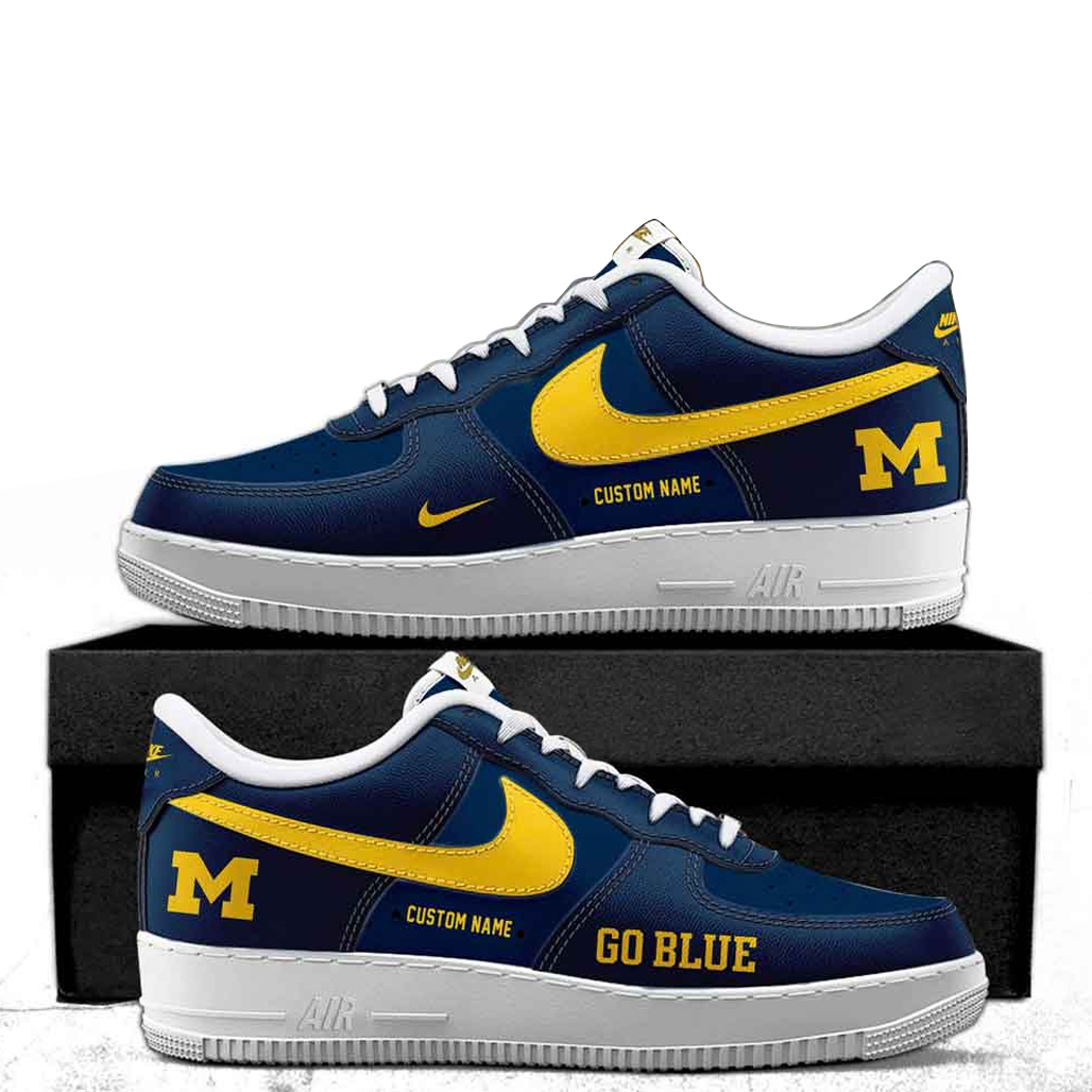 Custom Name Michigan Wolverines Go Blue Air Force 1 Shoes Sneakers