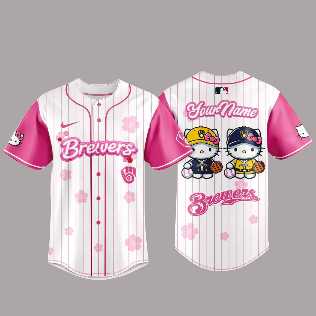 Custom Name Milwaukee Brewers x Hello Kitty Night 2026 Baseball Jersey Custom Name Milwaukee Brewers x Hello Kitty Night 2026 Baseball Jersey