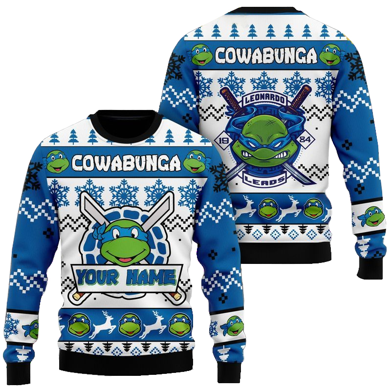 Lead the way this holiday season with the Custom Name Teenage Mutant Ninja Turtles Leonardo Leads Ugly Christmas Sweater 2025 in bold blue! This festive sweater honors Leonardo, the fearless leader of the Teenage Mutant Ninja Turtles, with a graphic that showcases his iconic leadership and valor. Featuring a holiday twist, this sweater is perfect for TMNT fans who want to celebrate the season with their favorite blue-masked turtle. Add your custom name for a personalized touch that makes this sweater uniquely yours!