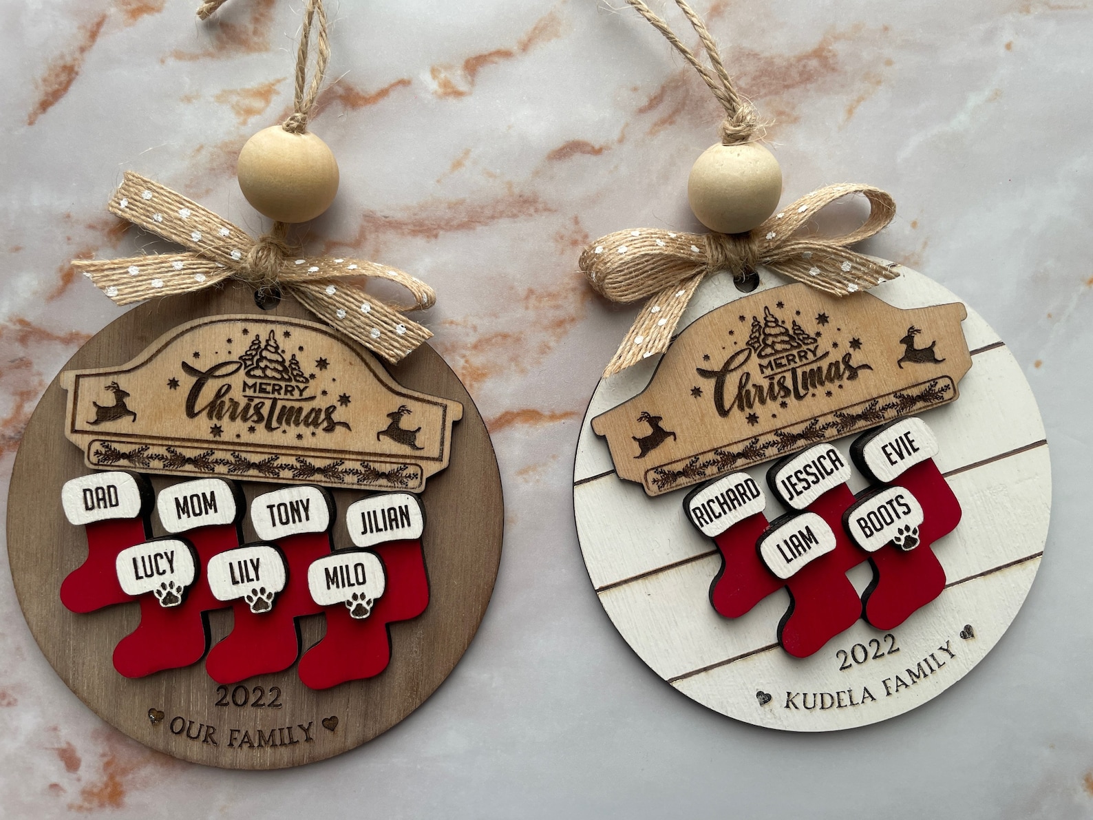 Custom Wooden Family Christmas Ornament 2025| 3dLaser Cut Personalized Christmas Ornament Family Name 1-10 | Christmas Stocking Ornament|