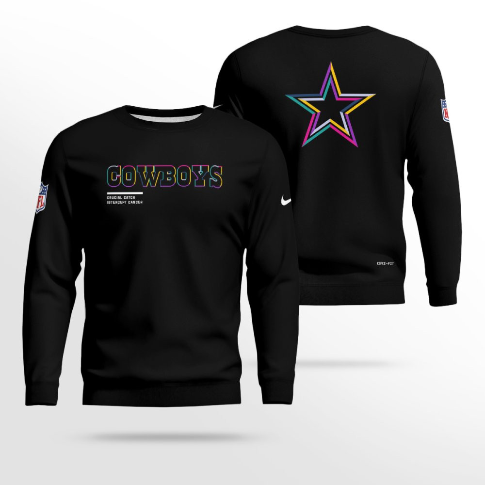 Dallas Cowboys Black 2025 Crucial Catch Sideline Standard Issue Hoodie