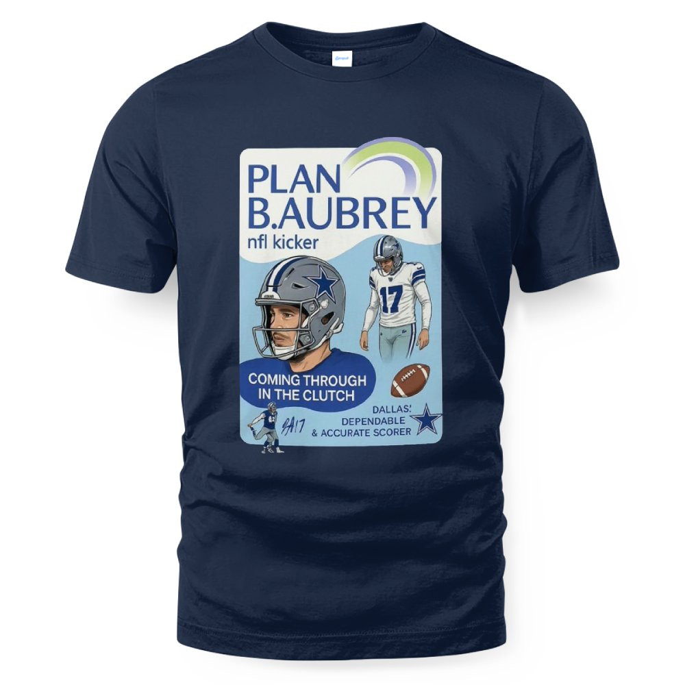 Get your Dallas Cowboys Brandon Aubrey Plan B.Aubrey Kicker T-Shirt today and let everyone know you’re all in on Plan B.Aubrey.