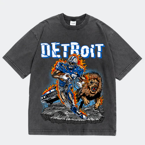 Graphic: Vintage wash “Detroit Lions Football” design with bold team-inspired artwork.