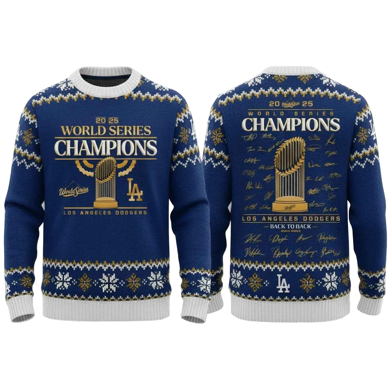 Winning back-to-back World Series titles is a feat few teams can claim, and this sweater is the perfect way to pay tribute to the Dodgers’ exceptional run in 2024 and 2025. With its festive design and bold championship graphics, it’s a must-have for any fan who wants to relive the glory of these historic seasons. Whether you’re watching the games or attending a holiday gathering, this sweater is a great way to show off your Dodgers pride.
