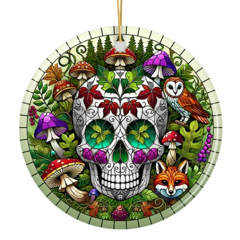 Enchanted Woodland Sugar Skull Ornament – A Mystical Blend of Nature and Art