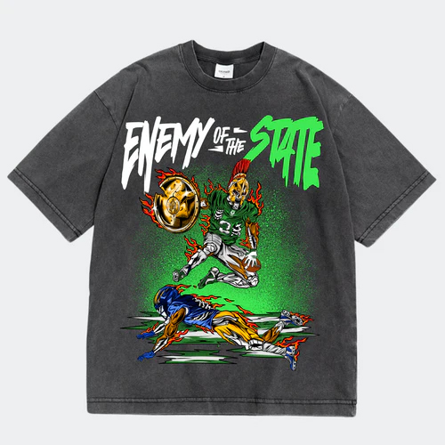 With its impactful “Enemy of The State” graphic, this shirt embodies attitude, strength, and a fearless mindset — perfect for anyone who moves against the crowd and isn’t afraid to be seen as different. Whether you’re expressing your individuality, showcasing your edge, or simply loving the bold aesthetic, this tee delivers a look that speaks volumes.