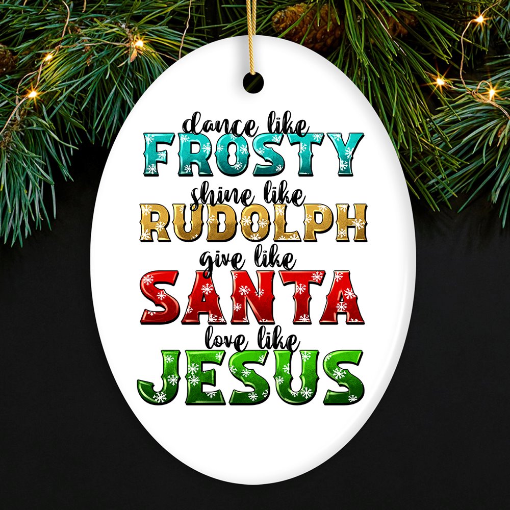 Festive Christmas Quotable Ornament – Dance like Frosty, Shine like Rudolph, Give like Santa, Love like Jesus