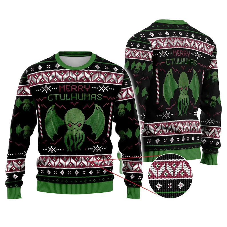 Whether you’re attending an ugly sweater contest, a themed party, or cozying up for a horror movie night, this sweater brings cosmic chaos to your Christmas festivities. It’s playful, bold, and delightfully unexpected.