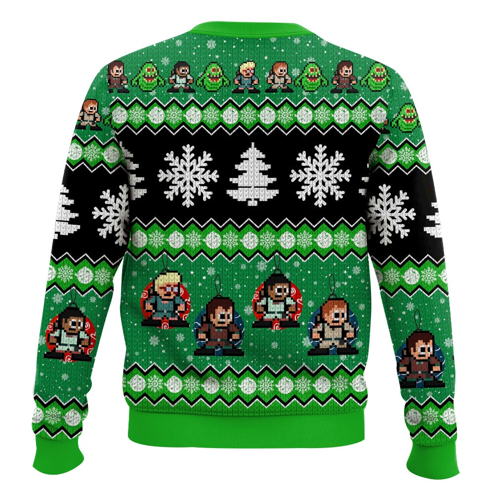 Ghostbusters Ugly Sweater This Curvy Glams exclusive Ugly Christmas Sweater design is guaranteed to get attention and get the party started. It?s sure to be your best holiday purchase yet! Material: Our sweaters are made from high-quality polyester wool blend, which keeps you warm and never crack, peel or flake. Features a specialty high definition heat-dye application that ensures long lasting color vibrancy even after machine washing. All our sweaters are handcrafted, cut and sewn one-by-one for the highest quality standard Sizing: Unisex fit. Click on size chart button above add to cart button for addiditional sizing information Care Instructions: Regular handwash; Machine wash (max 40? or 105F); Do not bleach; Iron on a low heat;Tumble dry.