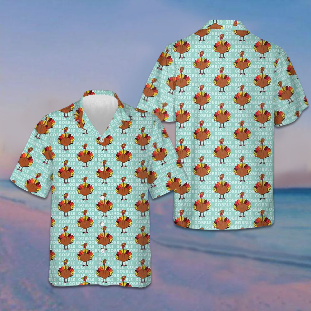 Gobble Thanksgiving Turkey Hawaiian Shirt Men's Short Sleeve Button Up Thanksgiving Ideas